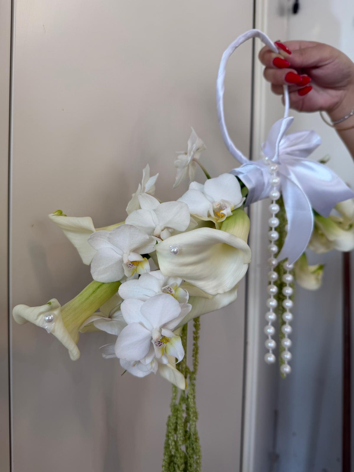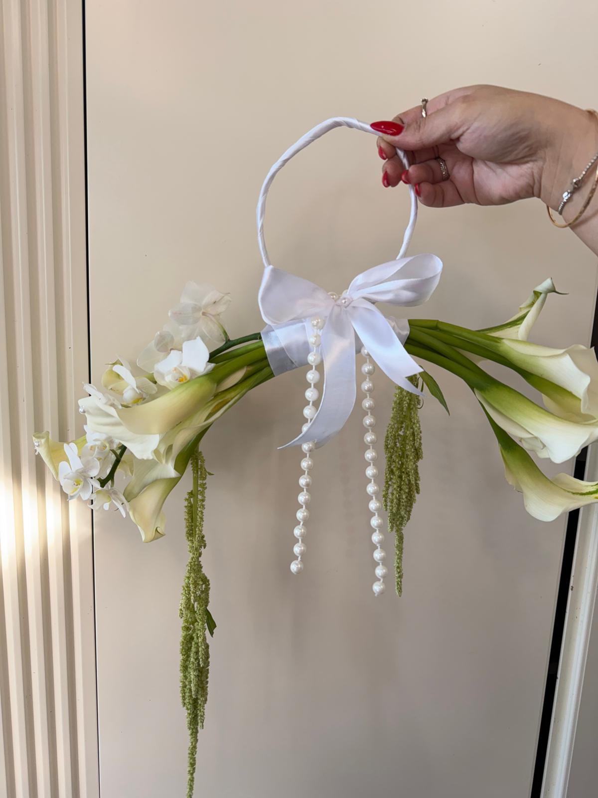 הזר כולל פרחי קאלות ( בהתאם לעונה ) פרח הסחלב . הזר מעוצב ומוקפד .