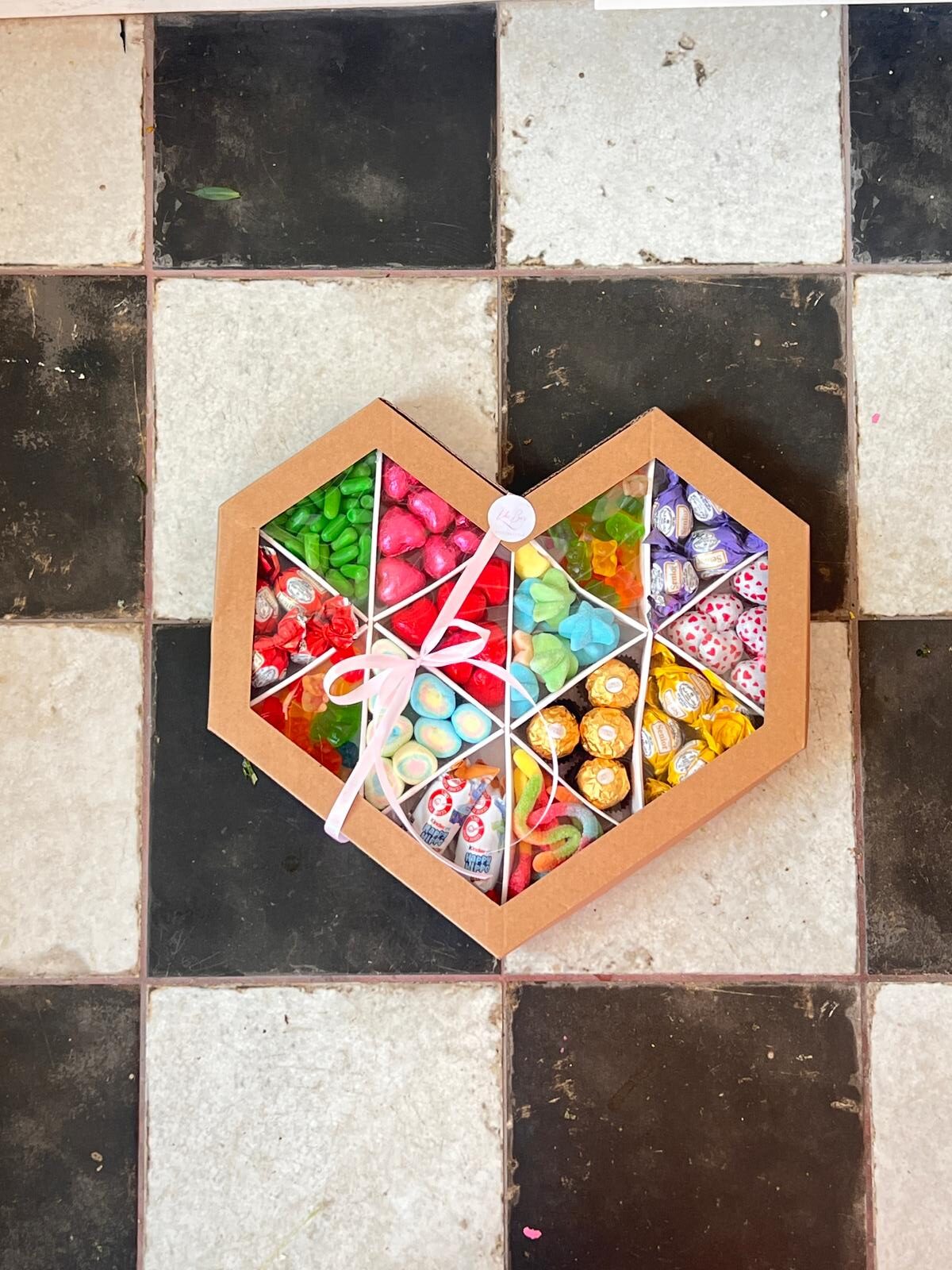מארז מפנק ומתוק במיוחד הכולל מגוון של שקולדים , חמצוצים . בתוך קופסת לב , ניתן להוסיף כיתוב על הקופסה