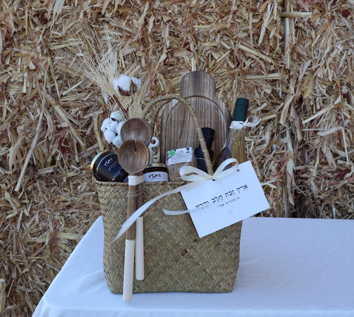 המארז המרשים והיפה שלנו – מגיע עם תיק ליצי טבעי , מגוון ממוצרי חברת פתורה – שמן זית כתית מעולה 100 מ"ל , צנצנת ממרח של חברת "פטורה" טפנד זיתים ירוקים בשמן זית \ עגבניות מיובשות בשמן זית \זעתר מדברי בשמן \ פסטו בשמן זית 110 מ"ל ( משתנה בהתאם למלאי) , צנצנת זיתים שחורים \ ירוקים 120גרם , קרקרים עבודת יד של חברת "עידית וסביון " קרקר כוסמין מלא ופשתן , זוג כפות הגשה של חברת FLORALIZ , מגש עץ להגשה , אגרטל בצורת כלי חלב מכרס עם זר מפרחים מיובשים .